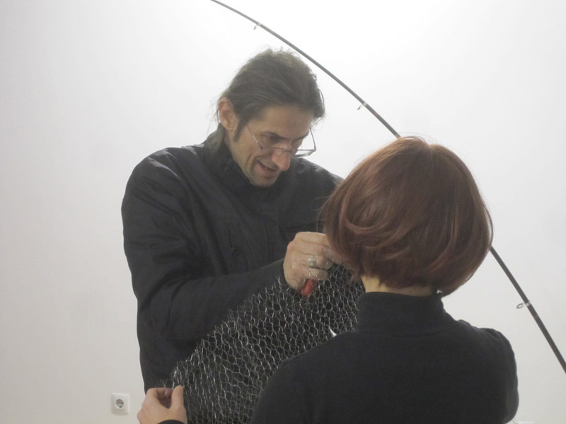 Ch. Alaveras "clips" Robert Plant, accompanied vocally by the tenor P. Nikolaidis, who sings "the Barber of Seville", for the audience of the Lineatio Decans inauguration.